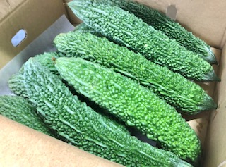 中段の写真は、本日使用したゴーヤです。宮崎県産のものでした。