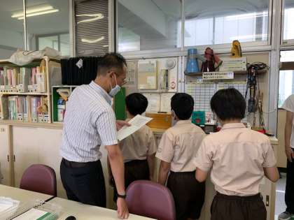 7月9日(木)今日も朝から雨が降っていますが、校庭の樹木からはセミの鳴き声も聞こえてきました。木曜日の朝は、ふだんなら講堂に全学年が集まって児童集会をしていますが、「3密」を避けるために、放送を通して集会を行いました。