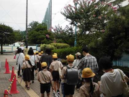 本番を想定し保護者の方お一人ずつお名前を確認させていただいての引き渡しにご協力いただき、ありがとうございました。無事にお子さまを保護者の方に引き渡すことができました。