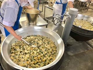 明日の献立は、「チキンカレーライス・フルーツ白玉・牛乳」です。明日の献立も楽しみにしていてくださいね。