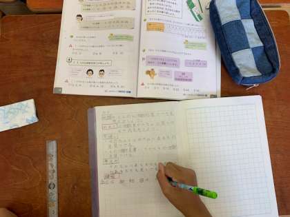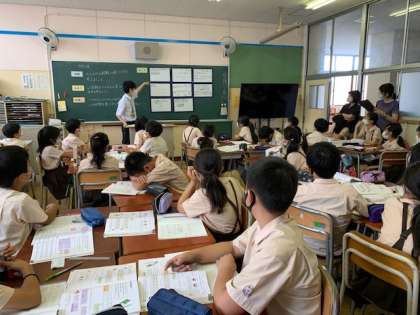 5年生では、大阪市の「学力検証授業」ということで算数の研究授業を行いました。「整数の性質を調べよう」という単元で公倍数の見つけ方を考えました。5年生の子どもたちは解き方の見通しを持ち、グループで話し合って、どうすれば簡単に公倍数が見つけられるかを考えました。こうした学習過程を経て、子どもたちの思考力が育ちます。
