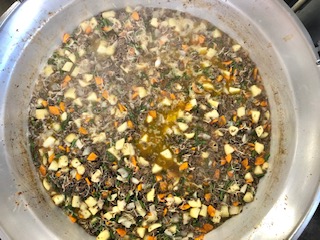 下段の写真は、肉じゃがを煮込んでいる様子です。