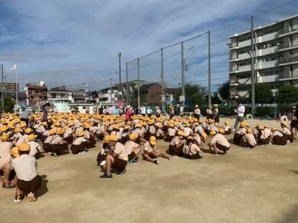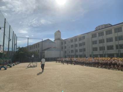 9月14日(月)全校朝会を運動場でしました。校長先生からは「今週の木、金曜日に6年生が修学旅行に行きます。これは1〜5年生までに学習規律を守ってちゃんと頑張ってきたことの集大成として行くものです。それぞれの学年で頑張りましょう。」というお話がありました。
