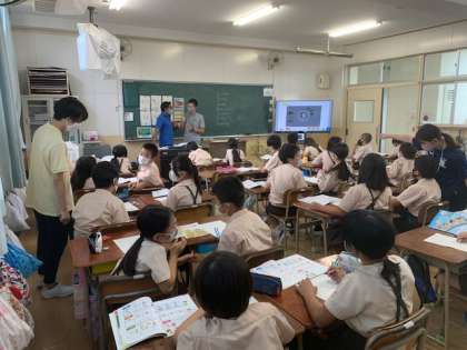 6時間目には4年生の外国語活動の授業を教育実習生が参観しました。担任とC-NETのロバート先生がティームティーチングで指導し、4年生の子どもたちは友だちと「何曜日が好きですか?」「〇曜日が好きです」を英語で積極的に尋ね合っていました。