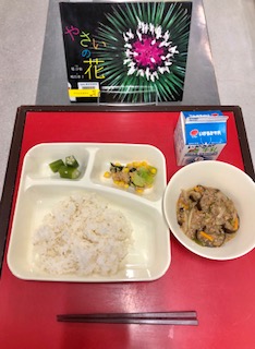 本日の給食を食べた児童の感想には、「マーボーなすはひき肉がいい味付けで美味しかったです。(5年生)」「オクラは苦手な野菜やったけど今日の甘酢あえは味付けがよくて美味しかったです。(5年生)」等がありました。