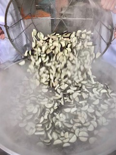 マーボーなすは、なす、ひき肉、たまねぎ、にんじん等が入った炒め煮でした。最初にしょうがやトウバンジャンを炒めて食欲をそそる香りを出しています。