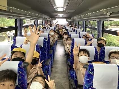 子どもたちの話をしている様子から、ウキウキしているのが伝わってきます。バスの外から出発を見送る様子は、別途HPへアップロードします。今後、道中の様子をアップロードしていきますので、楽しみにしておいてください