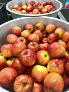 下段の写真は、本日使用したりんごです。約210個使用しました。