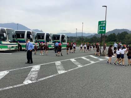 少し雨が降っています。子どもたちはからは「最悪や〜」という声が聞こえてきます。