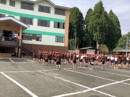 開舎式のあと、部屋に荷物を入れてから避難訓練を行っています。