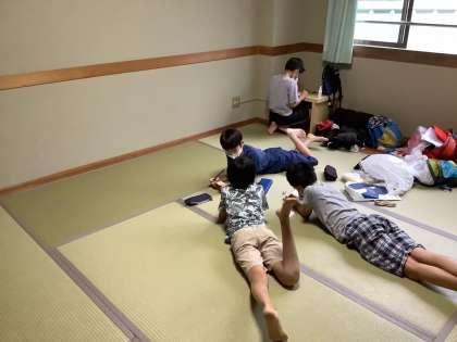 待っている間は、葉書を書いたり、部屋の仲間で話をしたりしています。