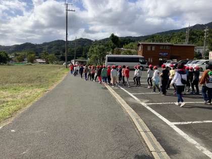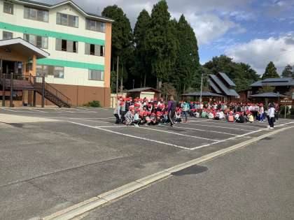 滝に向けて出発する前にクラス毎に写真を撮りました
