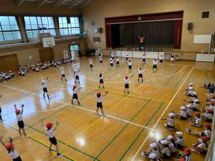 10月19日(月)気温の低い朝になりました。運動会まであと1週間となりましたが昼前から小雨が降り出したので体育館で練習したり、雨が止むと運動場で練習したりしました。今日は2,4,6年生の練習の様子をお知らせします。