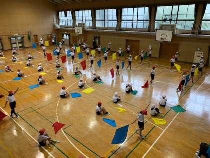 4年生は団体演技「インフェルノ〜炎炎のなわとび〜」と個人走「出動!第4学年消防団」をがんばります。