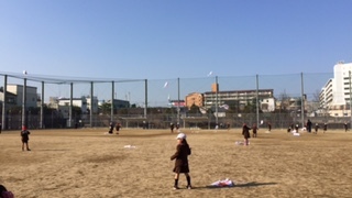 1年生は生活科で「おしょうがつのあそびをたのしもう」の学習をしています。これまでに、はねつき、こま、すごろく等を楽しんできました。今日は自分たちで好きな絵をかいて作った凧を、鶴見中央公園グラウンドへあげに行く日です。冬の青空のもとで、子どもたちは元気いっぱい走り回って思い切り凧あげをしました。子どもたちは「フェンスより高くあがったよ。」「寒かったけど走ってたら暑くなってきた。」などと言っていました。うまくあがってよかったですね。
