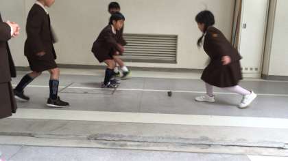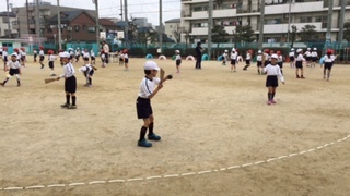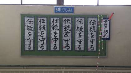 子どもたちは、行く1月を惜しむかのようにお正月の行事を楽しんでいます。1年生は生活科で凧あげの他にも、はねつきや、こままわしをしました。6年生は書き初めで「伝統を守る」と書きました。他の学年も書き初めをしたり、百人一首をしたりしました。