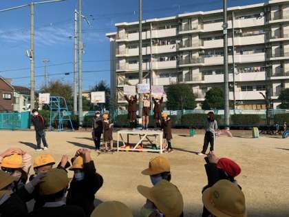 11月5日(木)朝から良いお天気になりました。児童集会の様子をお知らせします。