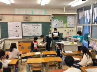 11月11日(水)、今年度2回目の給食研修会を職員全員で行いました。今回は食物アレルギーが発症した時の対応をシミュレーションする訓練で、教室と職員室のグループに分かれて行いました。