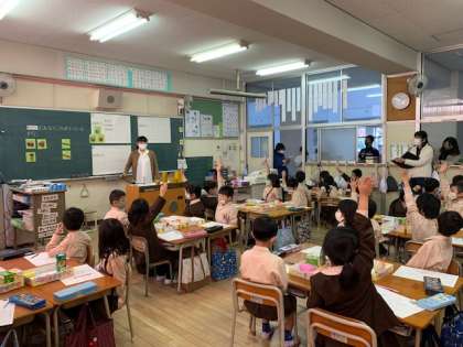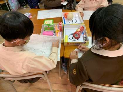 5時間目は1年生で算数の研究授業をしました。「かたちあそび」の単元で、球や円柱、直方体の立体図形を仲間分けする学習内容です。1年生の子どもたちは積み木を使って、友だちと相談しながら考えて、仲間分けを表に記入していきました。放課後は全教員が参加して研究討議会を行い、授業のふり返りをしました。大阪市教育センターの井上泰希指導教諭からも指導助言をいただきました。今後の指導に活かしていきたいと思います。
