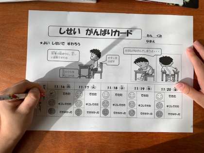 今週は「姿勢強調週間」です。子どもたちは「学習や給食の時には姿勢に気をつけましょう」の放送を聞いたり、「姿勢がんばりカード」に記入したりして、良い姿勢をしようと取り組んでいました。