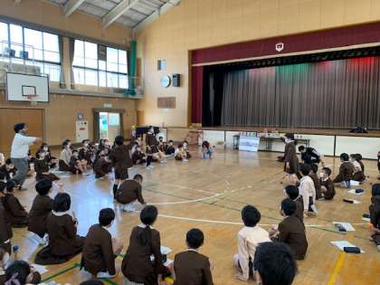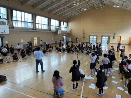 今日は公益社団法人「日本けん玉協会」副会長の矢野博幸さんが来てくださって、4,6年生で「けん玉教室」をしました。4年生には、初めての人も含めてけん玉に慣れ親しむような活動をしていただき、6年生にはいろいろな技も含めて楽しい練習をしてくださいました。6年生の中にはけん玉の有段者もいて、とても楽しい活動になりました。
