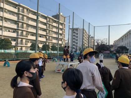 朝は1〜6年生混合の「なかよし班」で児童集会をしました。集会委員会が「くだもの狩り」ゲームをしてくれました。「もも」なら2人組を、「パッションフルーツ」なら7人組を作って座るゲームで、子どもたちは寒さも忘れて楽しんでいました。