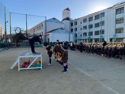 続けて鶴見連合ソフトボールチームが「新春鶴見区交流小学生ソフトボール大会」で優勝したので表彰がありました。また代表委員からは、「今週はあいさつ週間です。人にあいさつするとお互いが笑顔になって、いい気持がしますね。」と呼びかけがありました。