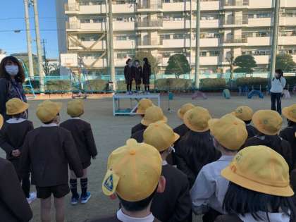 全校朝会では校長先生から「昨日は26年前に阪神淡路大震災が起きた日です。災害はいつどこで起きるかわかりません。学校では先生方の話をよく聞いて行動するようにしてください。」というお話がありました。