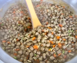 下段の写真は、カレー煮を煮込んでいる様子です。