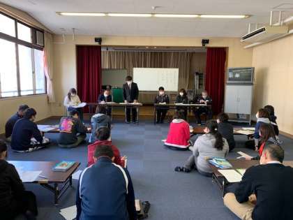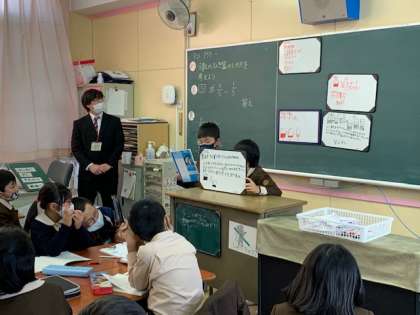 放課後は教員が多目的室で研究討議会を行い、授業の成果や課題について話し合いました。