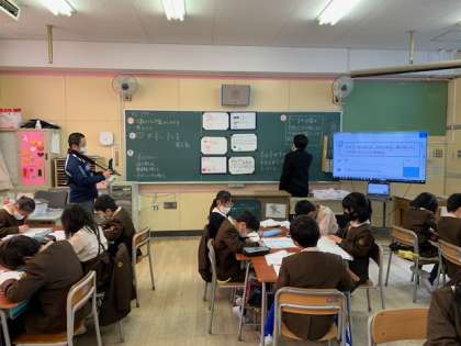 感染予防のため、教員の参観は「密」を避けて時間を区切ったり、教育センターとオンラインで結んで授業を見てもらったりする等の工夫も行いました。