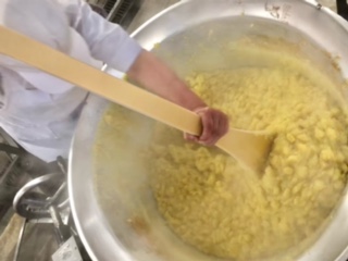 下段の写真は、くりきんとんを煮詰めている様子です。