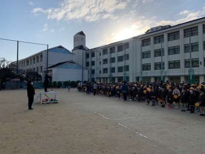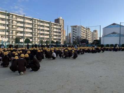 朝は運動場で全校朝会をしました。校長先生からは「大阪にも『緊急事態宣言』が出ているのは知っていますね。卒業遠足など楽しい行事が中止にならないようにするためには『マスク・手洗い・換気』などに一人一人が気を付けることが大切です。」という。お話がありました。続けて健康委員会が「キラキラチェック」をしました。手洗い後に手を拭いたりするためにもハンカチ・ティッシュ・爪を切ってくることを忘れないようにしてください。