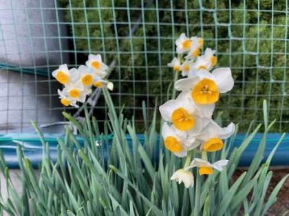 これからまだ寒くなることもあるでしょうが、運動場の花壇にはスイセンの花がきれいに咲いています。