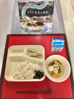 1月26日(火)の献立は、「ごはん・いわしてんぷら・あつあげと野菜の煮もの・ごまひじき・牛乳」でした。
