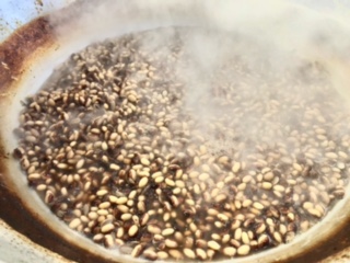 下段の写真は、出来上がったとら豆の煮ものです。