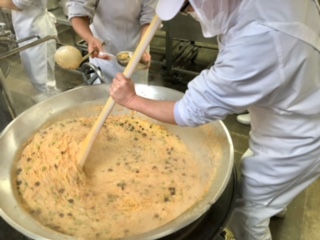 下段の写真は、クリームスパゲッティを仕上げているところです。