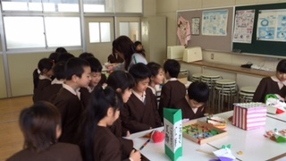 2月23日(月)1年間のクラブ活動のまとめとして、マンガ・イラストクラブ、図工クラブ、手芸・調理クラブの作品の展示があり、全校児童が順番に見学に行きました。