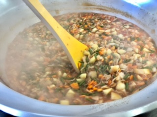 下段の写真は、ケチャップ煮を煮込んでいる様子です。