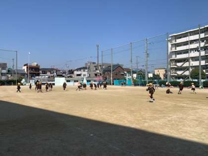 15分休みには春の暖かい日差しの下で、運動場でクラスの友だちと仲良く遊びました。