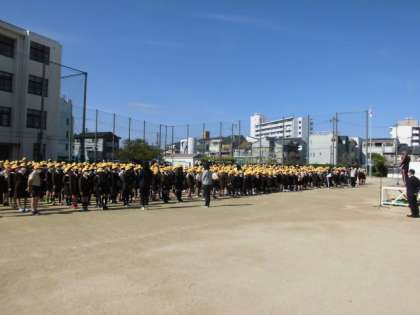 毎週月曜日は、児童朝会を行っています。児童朝会では、校長先生の話、今月の生活目標の話、諸連絡、キラキラチェック(清潔検査)等を行います。