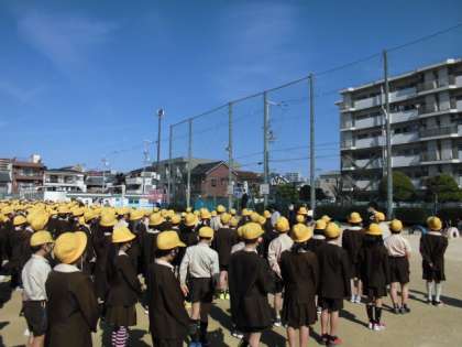 4月の生活目標は「きちんと並んで登校しよう」です。晴れの日は2列、雨の日は1列で気を付けて登校するよう、ご家庭でもお声掛けをお願いします。