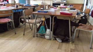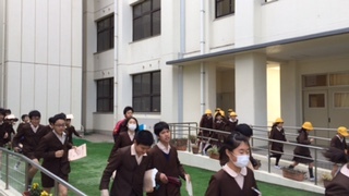 10時過ぎに「地震による避難訓練をします。ただ今地震が発生しました。強い揺れに備えなさい。」という放送があり、各教室では児童が机の下に隠れて頭部を守るなどしました。その後「地震がおさまりました。担任の先生の指示に従って、あわてずに運動場へ避難しなさい。」という放送を聞いて、児童は先生の指示で避難経路を通って運動場に避難し整列しました。全児童が揃ったのを確認して、教頭先生からお話がありました。「災害には火事などのように気をつけて防げるものもありますが、地震は防ぐことができません。しかし避難のしかたなどを訓練しておくと被害を減らすことはできます。学校での訓練はもちろんですが、家庭でも地震に備えてのお話をしておきましょう。」ということでした。生活指導部の先生からは「避難訓練は真剣な態度でやることが大切です。次の指示を聞くことができるように、おしゃべりなどしないで訓練に臨みましょう。」というお話がありました。