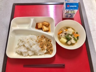 本日の給食を食べた児童の感想には、「あつあげの味が美味しかったです。(1年生)」「紅ざけそぼろがあったので、いつもよりごはんをたくさん食べられました。(5年生)」等がありました。明日の献立は、「コッペパン・いちごジャム・煮こみハンバーグ・コーンスープ・焼きかぼちゃ・牛乳」です。明日の給食も楽しみにしてくださいね。
