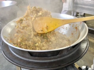 下段の写真は、焼きそばを仕上げている様子です。
