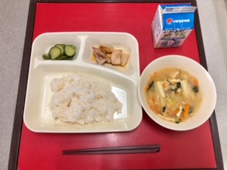 4月27日(火)の献立は、「ごはん・牛乳・焼きとり・みそ汁・きゅうりのゆず風味」でした。