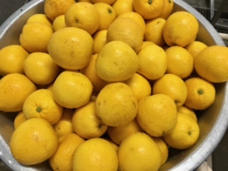 中段の写真は、カットする前のかわちばんかんです。漢字では「河内晩柑」と書き、熊本県の河内町で発見されたことからこの名前になったそうです。