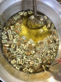 下段の写真は、ちくわのいそべあげを揚げている様子です。