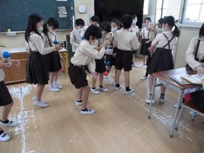 雨です。運動場も水浸しです。今日は3年生の教室をお邪魔してみました。けん玉をして遊んでいます。子どもたちはすぐに上達します。秋ごろにはすごい技ができる子が出てくると思います。