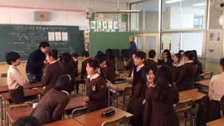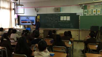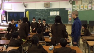 初めに英語のあいさつを教えてもらい、じゃんけん"Rock,Scissors,Paper"で負けた人が"How are you?"と尋ね、勝った人が"I'm〜."と答えるルールで、3勝すると座っていくというゲームをしました。次にAmerican School Lifeの紹介ということで、Eddy先生の出身校Arizonaの小学校の学校生活の様子の写真や動画を見せてもらいました。日本との共通点や違いに子どもたちは驚いていました。最後に"Heads up,Seven up"というアメリカの子どもの遊びをみんなで楽しみました。授業を終えた4年生は口々に「英語のゲームが楽しかったです。」「アメリカの学校生活はいいなあと思いました。」等といっていました。